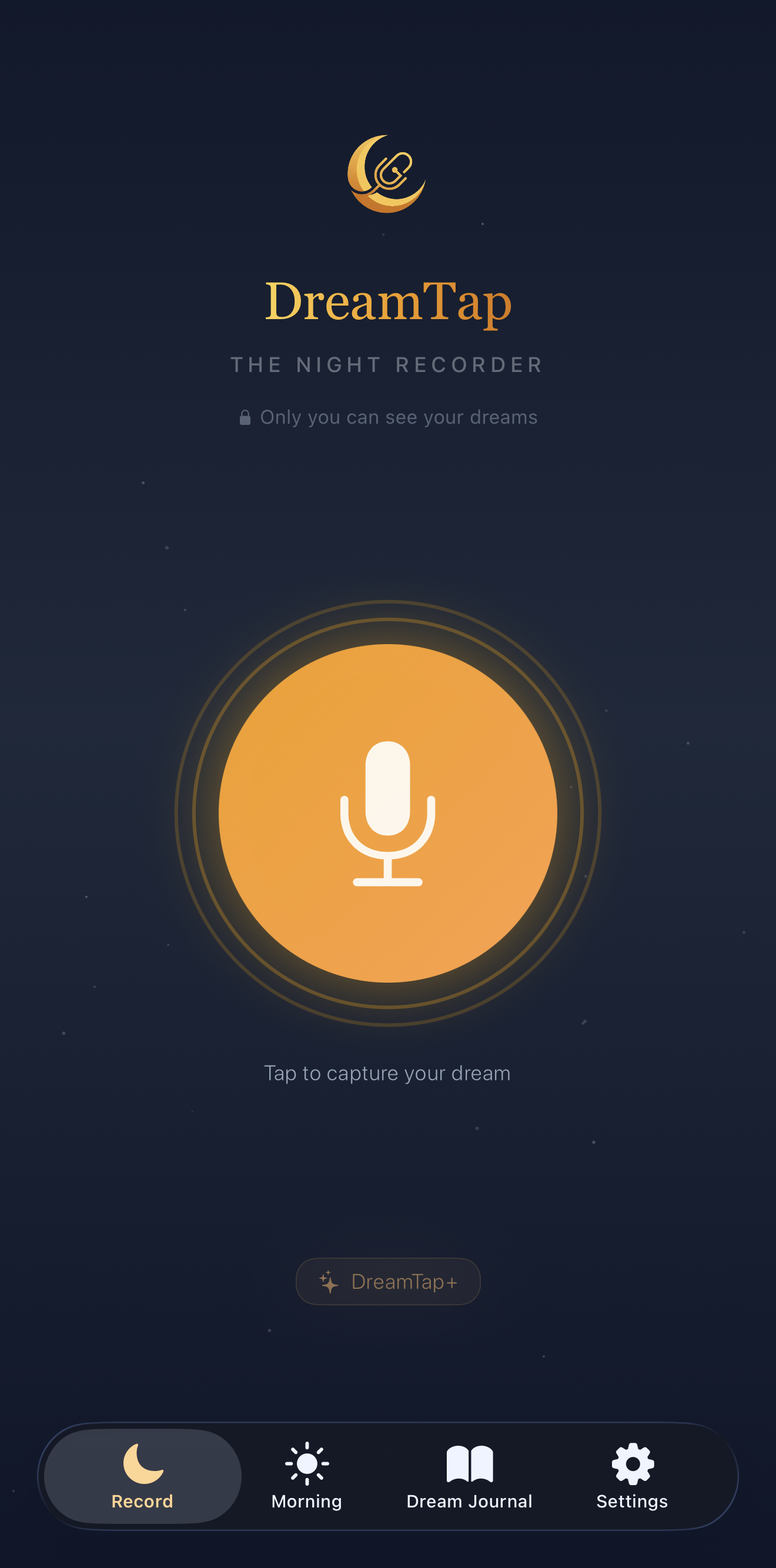 Voice-record dreams instantly. Auto-dims, auto-stops, then turns them into transcripts, art, and insights.
